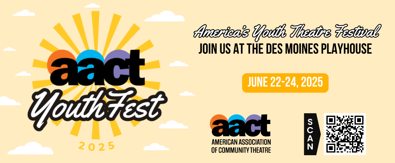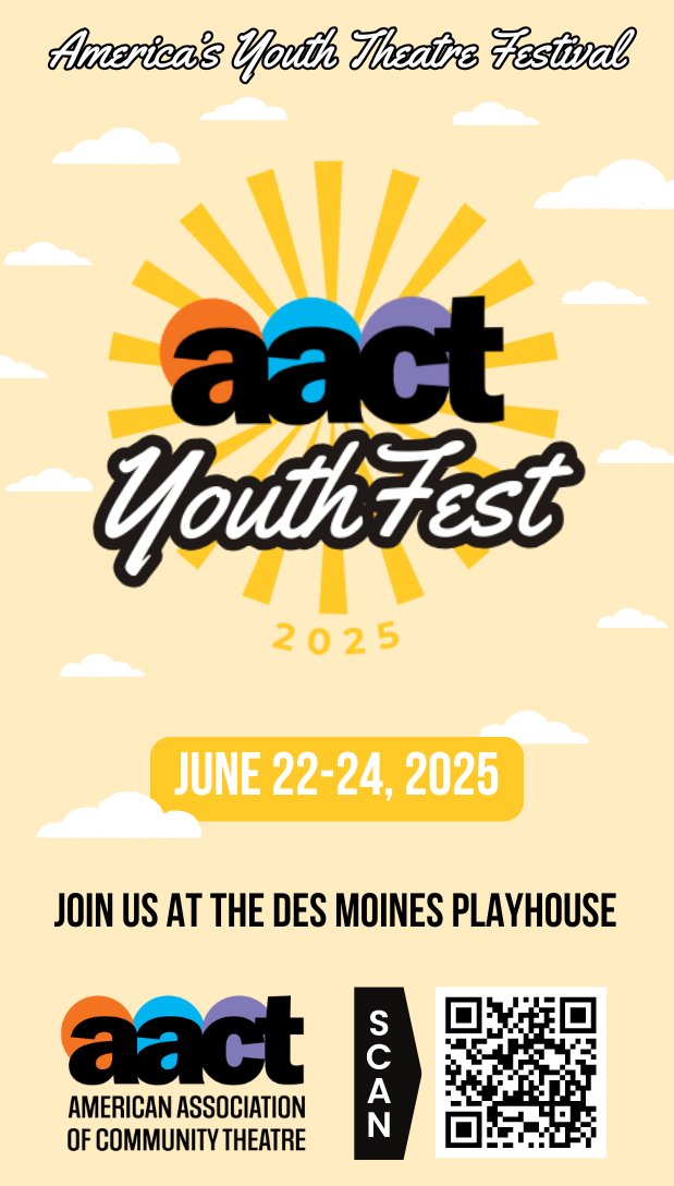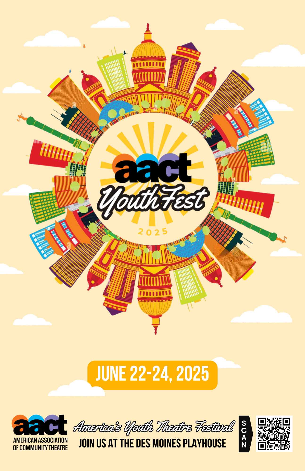 Join us for AACT YouthFest 2025, taking place June 22-24, 2025, in Des Moines, Iowa! This exciting festival celebrates the creativity and talent of young theatre artists from across the country, featuring powerful performances, engaging workshops, and meaningful networking opportunities.